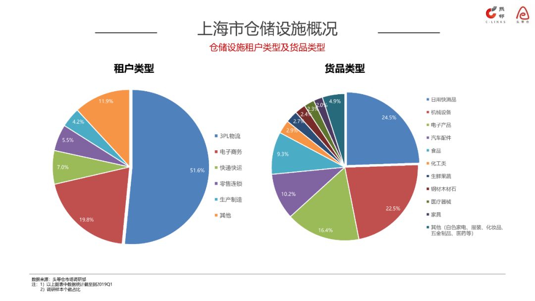 在近 1,000 个的调研样本中,头等仓对标的物业中用户企业的类型、存放货品的品类、用户的物流配送模式进行了不同维度的统计及分析。