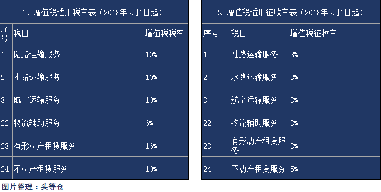 增值税一改再改,不动产租赁从最先的5%——11%——10%已经连续调了三档,物流业的运输服务税率也从11%下调至10%。