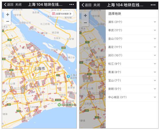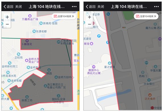 但因为清单中的104各区的分布图都是静态的,不可以点击地块名称或者地块范围查看更多信息,且图片精度比较粗糙,使用起来非常麻烦。